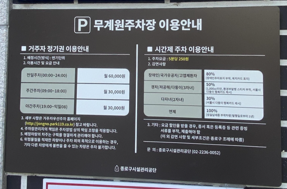 기록용으로 써보는 부암동 공영 주차장 중 하나인 [무계원 공영 주차장]