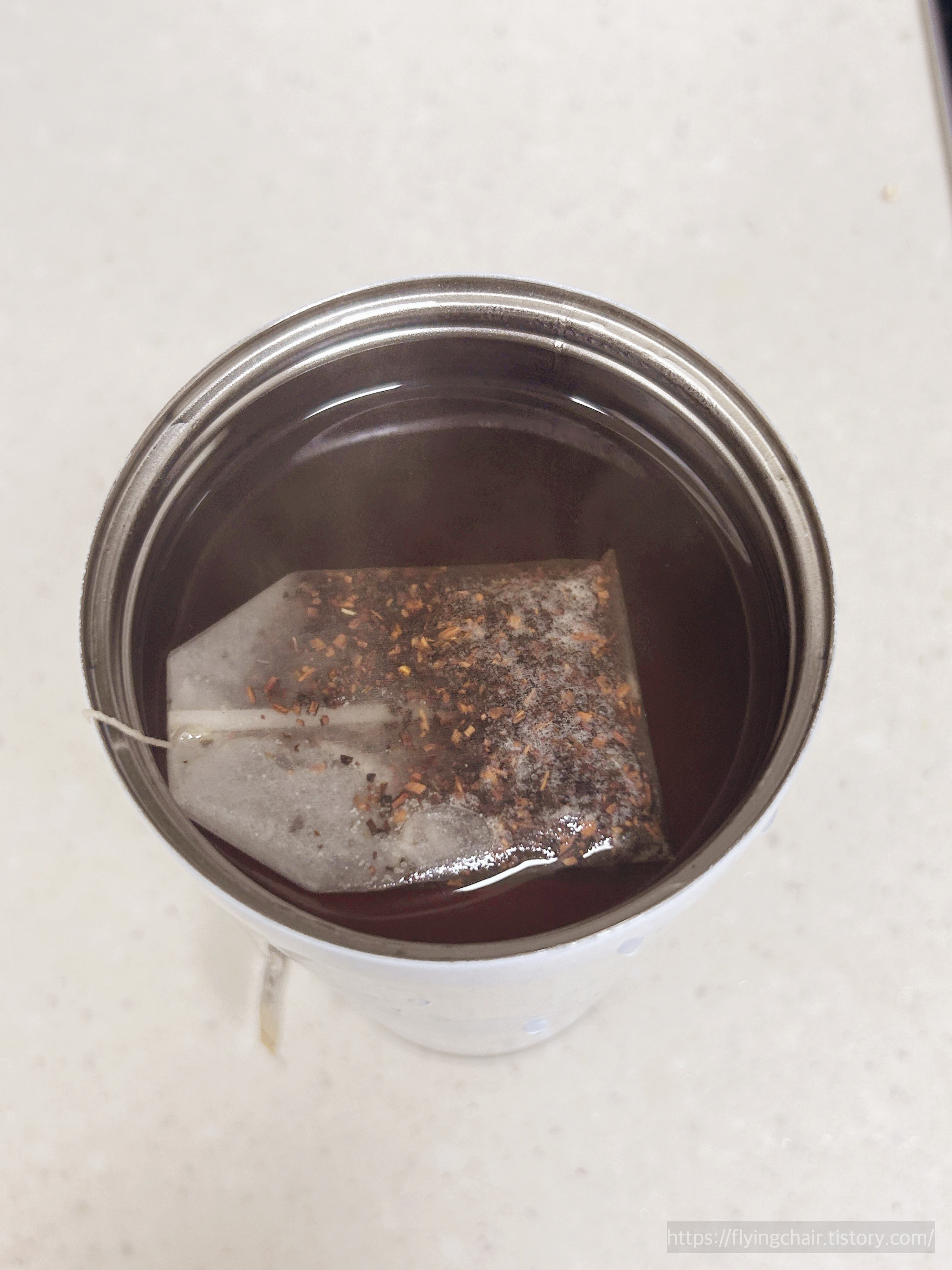 티백 우리는 중. 그란데 사이즈 텀블러라 5분 이상 우리고 있다.